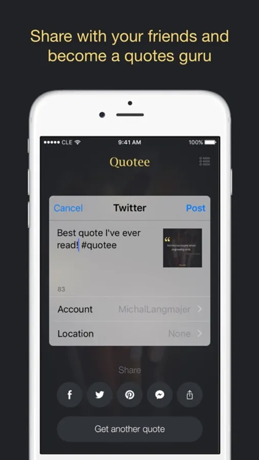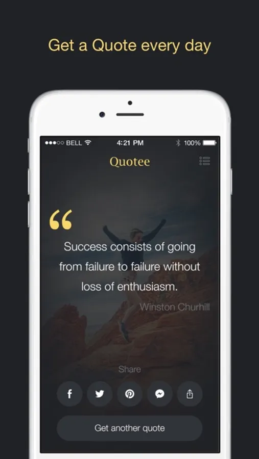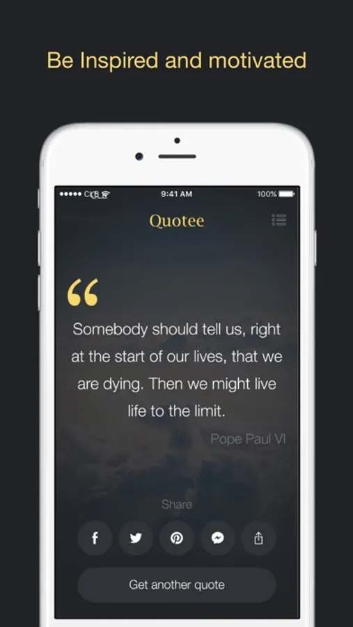 Every single day we deliver you a quote, right into your phone. You can easily share it with your friends via your favorite messenger or social networks, or even set it as your phone’s background. All this in a super stylish and easy-to-use app. So what are you waiting for?
