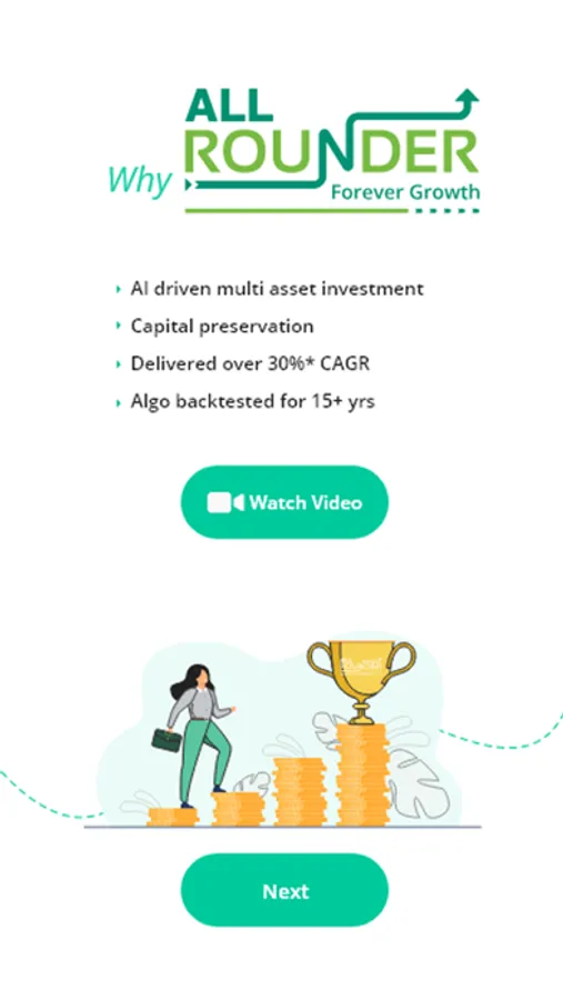 All-Rounder harnesses the power of AI to create a customized portfolio consisting of multiple assets such as equity, Gold, Global indices, and more.