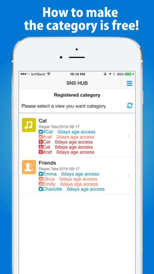 - First to register the category name. For example "Friends," "Artest", "Movie stars" "Local area information", please register a category to be worried about freely.