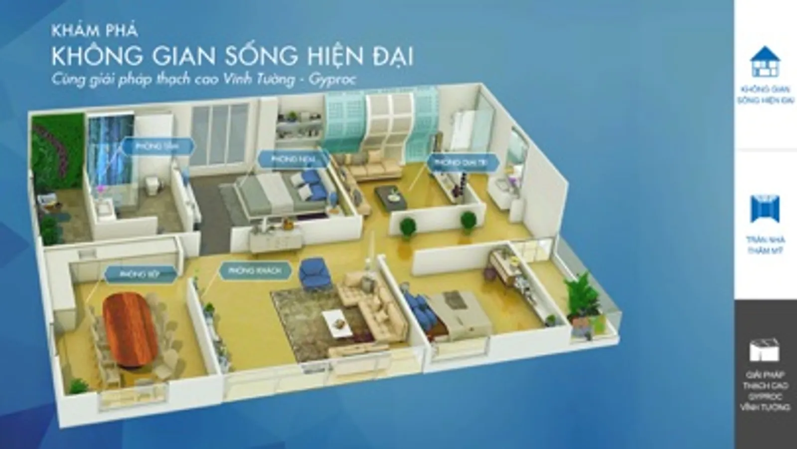 Phần 1: Trải nghiệm "Không gian sống hiện đại" từ các hệ thống tường và giải pháp thạch cao Vĩnh Tường- Gyproc cho nhà dân dụng thông qua hình ảnh Video 3D mô phỏng.