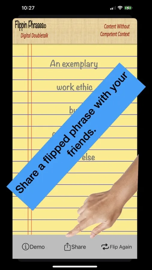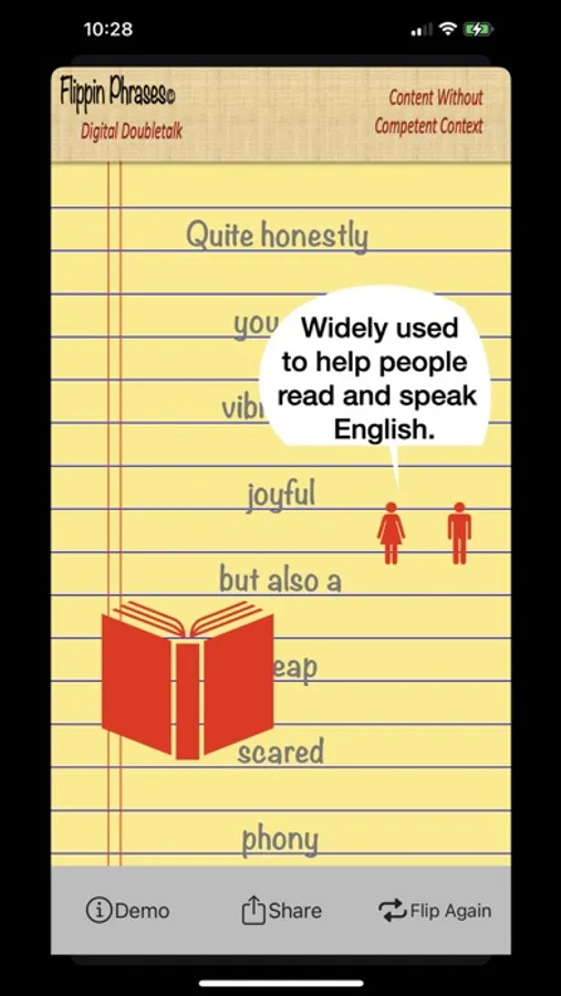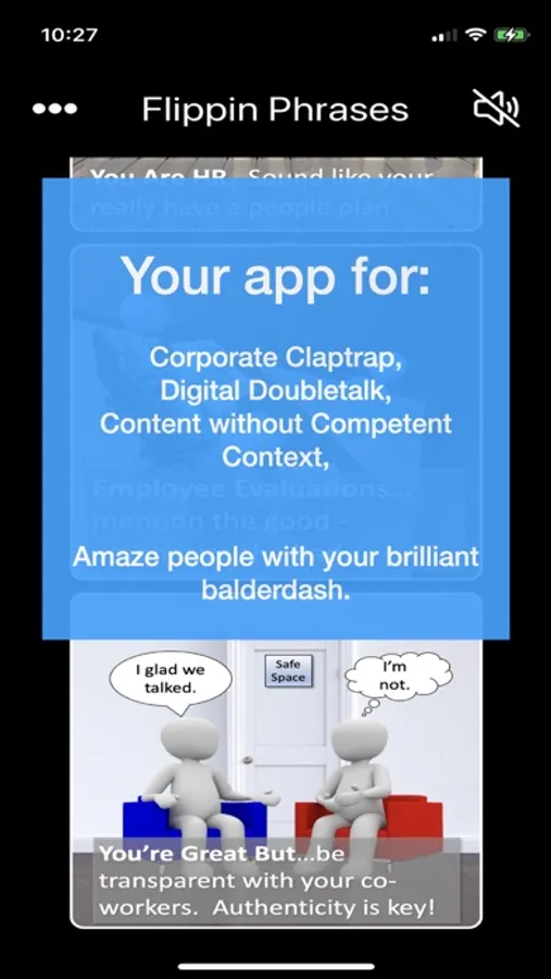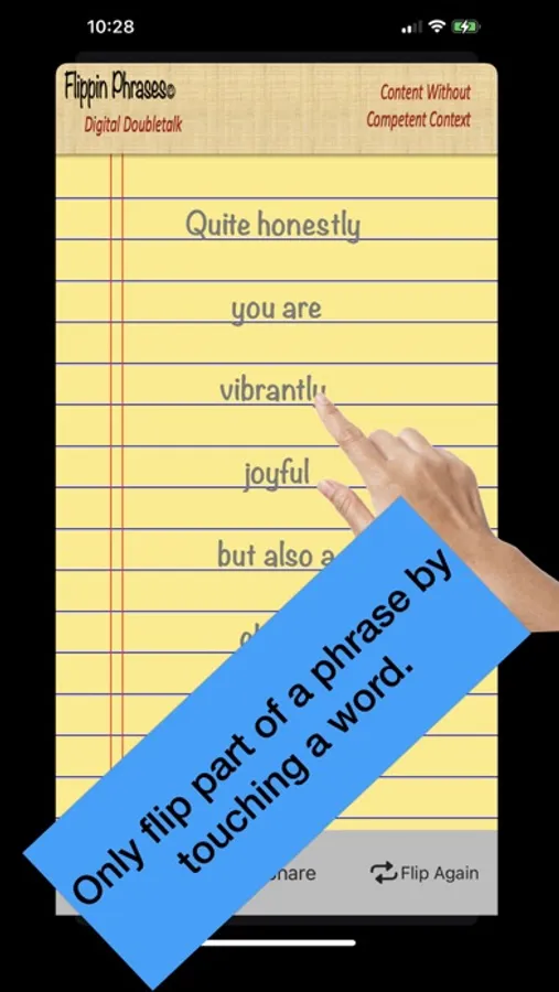 Flip people the word! Impress your boss and co-workers. Sound smart. Generate that brilliant sounding comment for your next video conference. Millions of word mashups possible. All phrases are customizable and can be shared and spoken aloud.