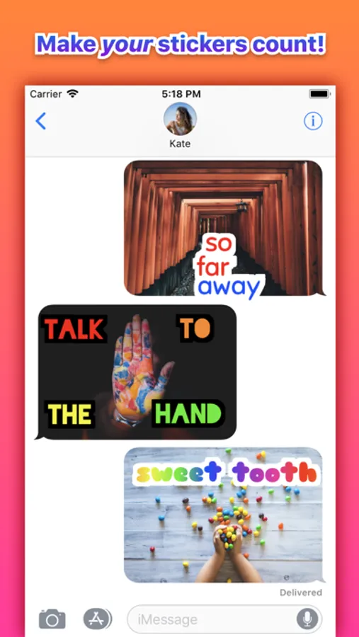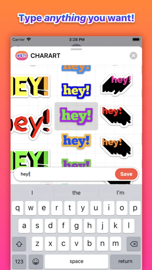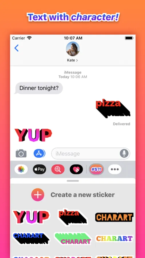 CHARART gives your messages style and punch. Create stickers that say anything you want, however you want it with tons of text styles. Peel and stick them on pictures or message bubbles. Slap them on pictures and selfies taken right in Messages. Your chats will never be the same with CHARART!