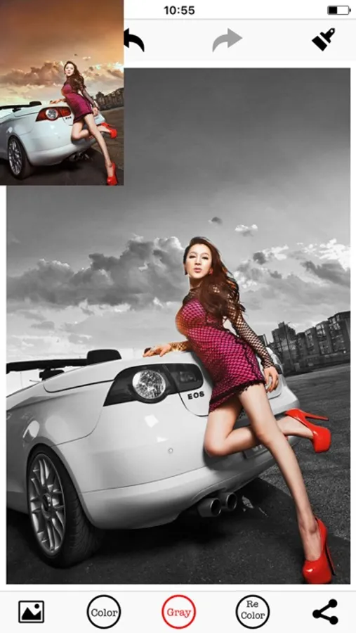 You can choose to recolor your photos with vivid colors: red, yellow, blue, green or the boring black and white.