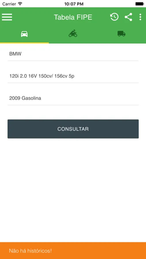 ▸ Histórico de Consultas FIPE - Mantém um histórico das consultas realizadas organizadas pelo o tipo.