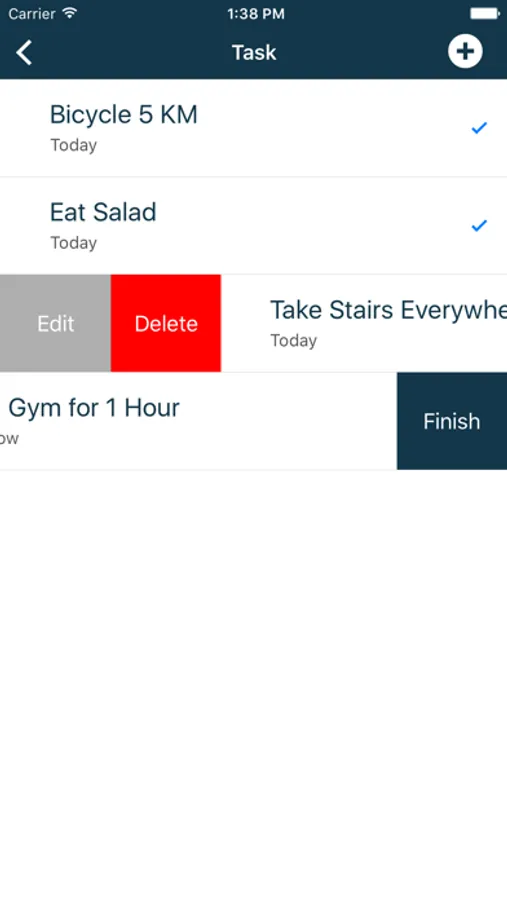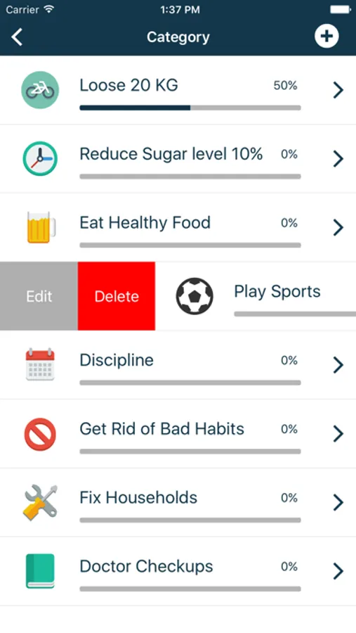 • Swipe left and right to edit/delete/finish a task/category/goal