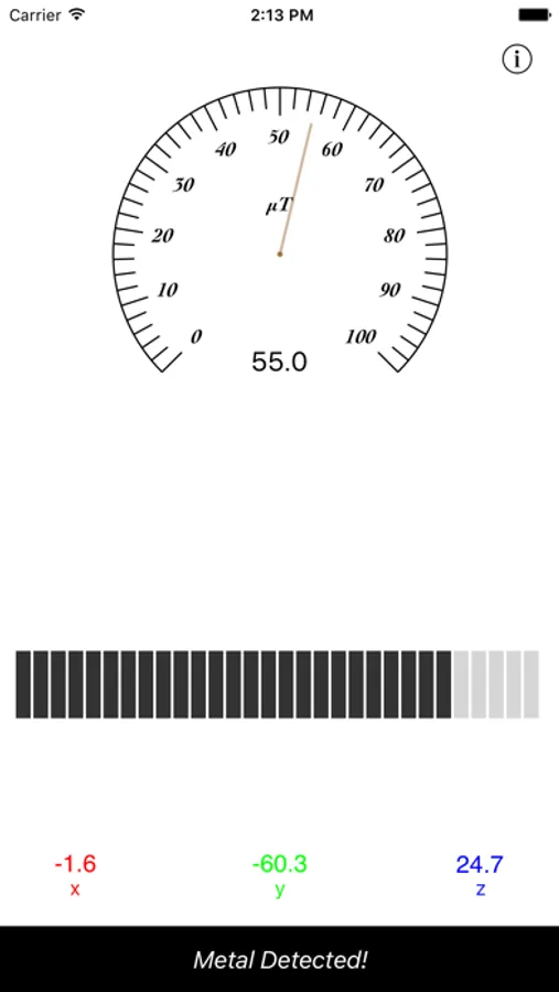 This app measures magnetic field using a magnetic sensor that is built into your device.