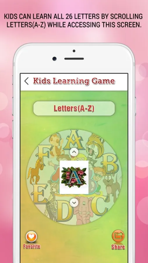 After selecting a particular category you can see a listing. When you accessing letters screen you can see letter & hear its pronunciation. You can learn other letters of an alphabet while scrolling the letter. It’s same for other categories while scrolling numbers you can learn 1 to 100 numbers. While accessing animal screen, you can hear a sound of an animal which displays on a screen.