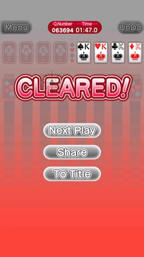 Once you move all the cards in an ascending order (A,2,3...J,Q,K), the game is cleared.