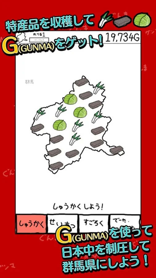 特産品の収穫できる数や種類などは群馬県レベルをあげることで増えていきます。