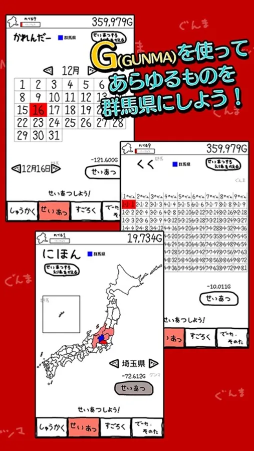日本の都道府県や、掛け算99、カレンダーなどを制圧し群馬県にすることができます。