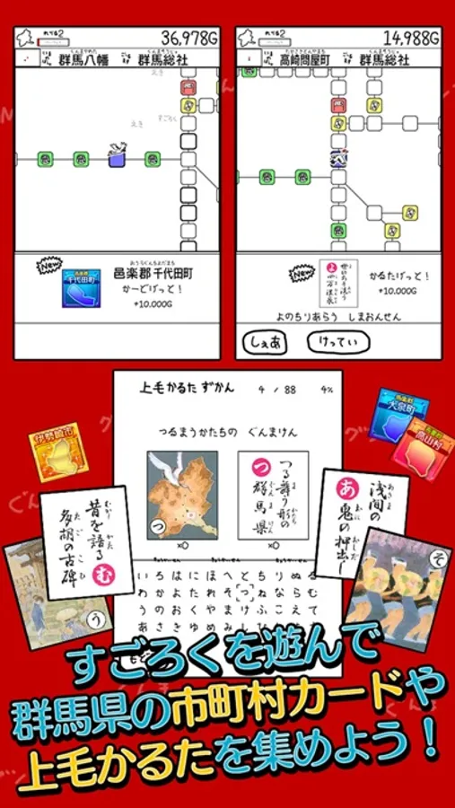 すごろくで集めた市町村カードや上毛かるたを見ることができます。