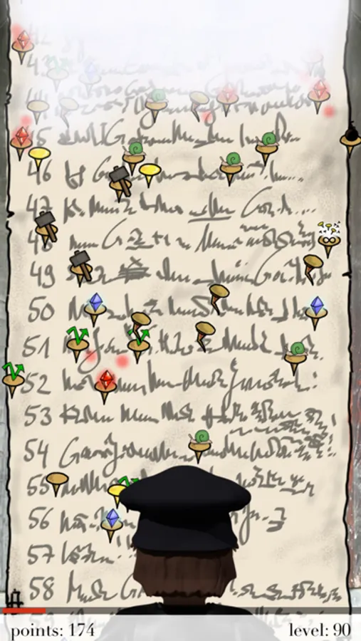 By finishing a level you can read the next thesis. It starts with easy nails, but soon it gets harder and new nails are added: nails, that need more hits, nails with higher points, moving nails, that are harder to hit, nails that create fog or rain, and many more. How far will you make it?
