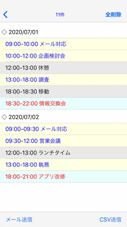 記録した内容はメールで送信出来ますので日報への転記も簡単に行えます。