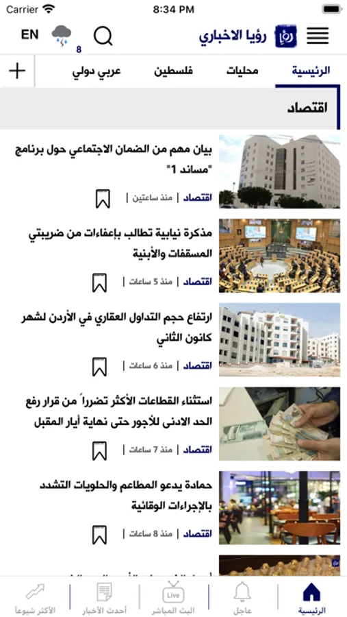 تطبيق أخباري أردني تابع لقناة رؤيا الفضائية ينقل لكم الأخبار المحلية الأردنية وأخبار فلسطين وأبرز الأخبار العربية والدولية.