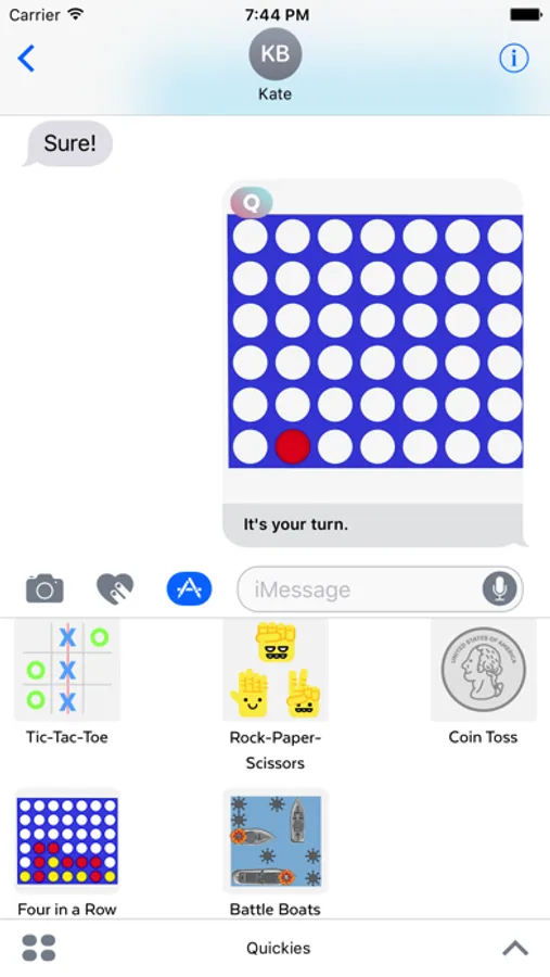 Quickies are quick games you can play with your friends right from the messages app! Simply open the app, choose a game and play.