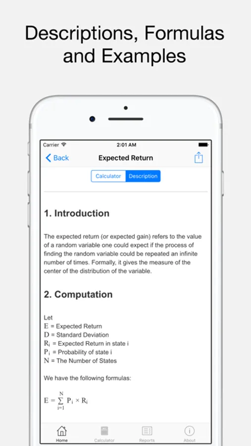Ray Financial Calculator combines traditional financial calculator with modern, easy to use calculators. In addition, this app can be used as a quick reference for financial problems since each calculator has a description, formulas and examples.
