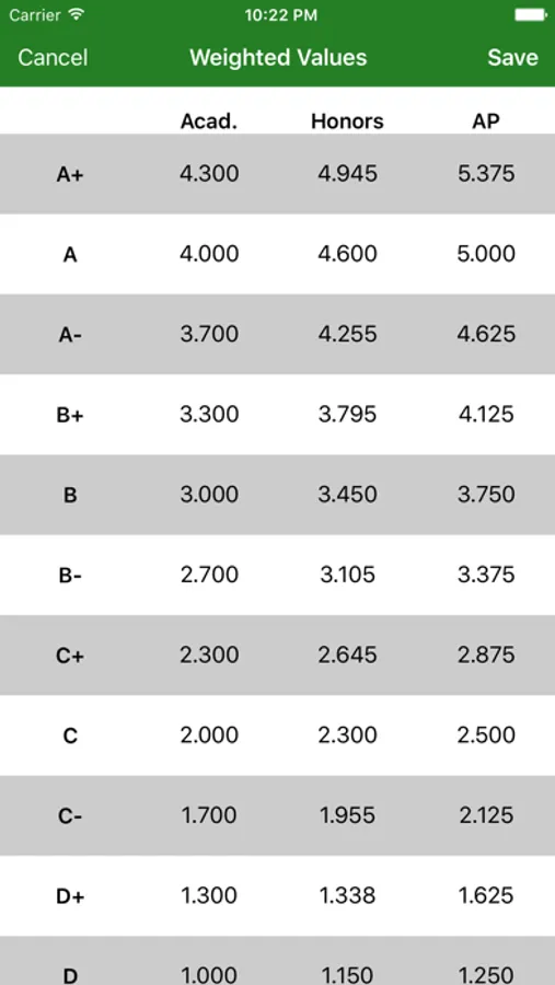Note: Default settings follow the curve at East Brunswick High School. To make the results accurate for your school, enter the correct values in Settings.