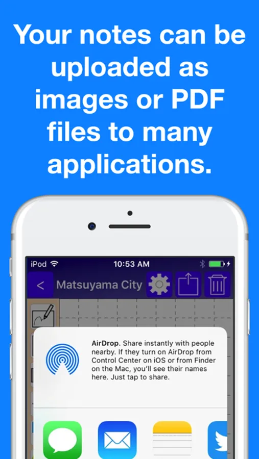 They can be uploaded as images to Twitter, Facebook, Google+, Instagram, Evernote, Flickr, Line, etc.