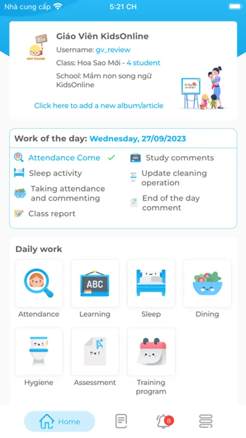 - Dễ dàng và chủ động đưa thông tin học tập, sinh hoạt, ăn ngủ và vui chơi của trẻ lên hệ thống;
