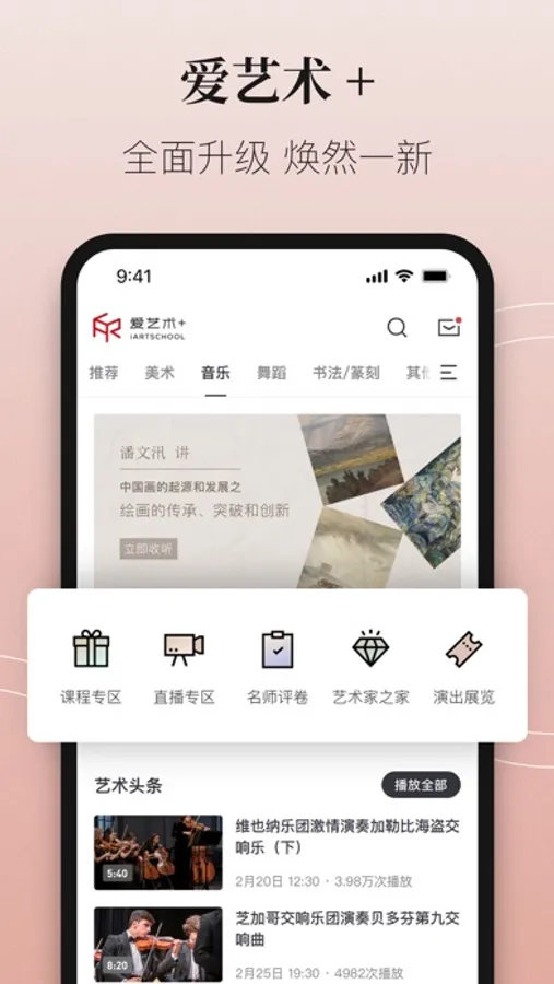 iartschool艺术+ 是由浙江艺高文化创意有限公司倾力打造的艺术学习类APP,拥有数百门音乐艺术课程,数百名艺术家、教育家, 为您提供全面科学合理的课程设计,满足您不同阶段的学习需求。 随时随地、在线学习,专业舒适、多样便捷。