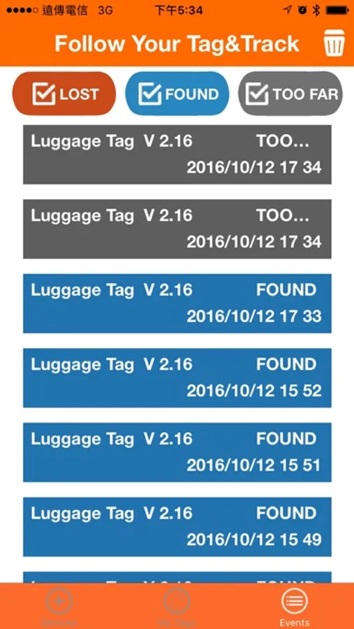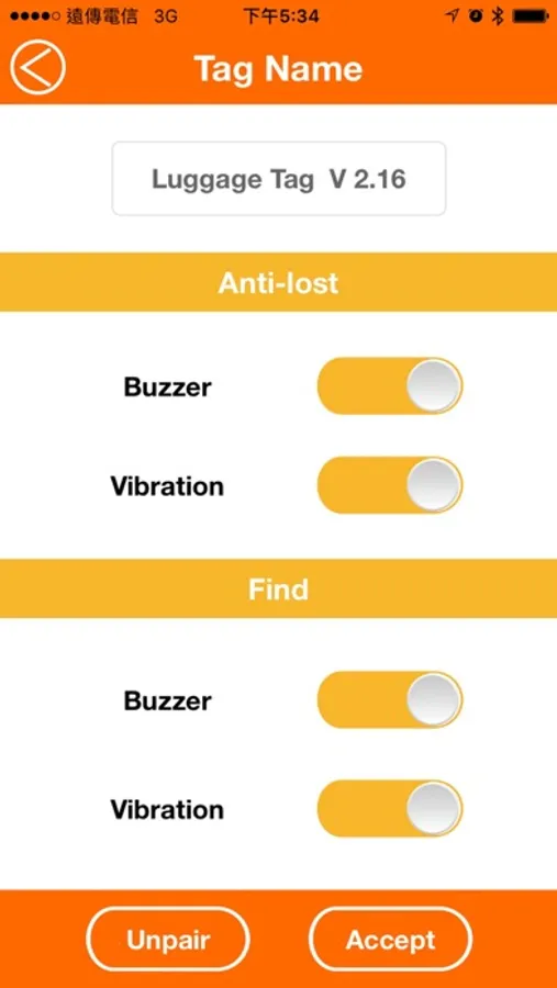 Tag&Track can remind you of your most important things during travel. Pair the App with Tag&TrackBluetooth luggage tag, so your mobile device and luggage are now linked. When the App is at “find mode”, you will be alarmed when your luggage iscoming out from the carousel. When the App is at “anti-lost” mode, you will receive alerts when luggage is out of your sight. Make misplacing your belongings a thing of the past!