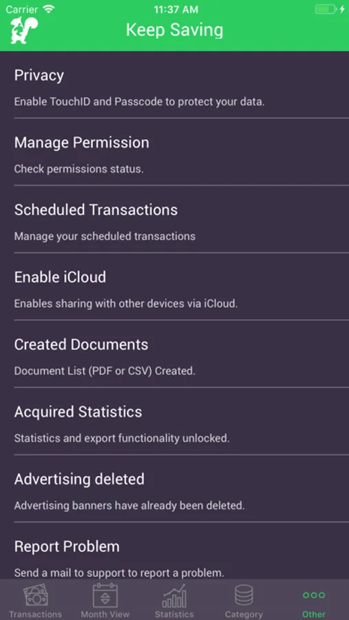 Keep Saving will allow you to get faster than any fixed monthly installments (loans, mortgages, rent ...) with automatic preset based on the previous month.