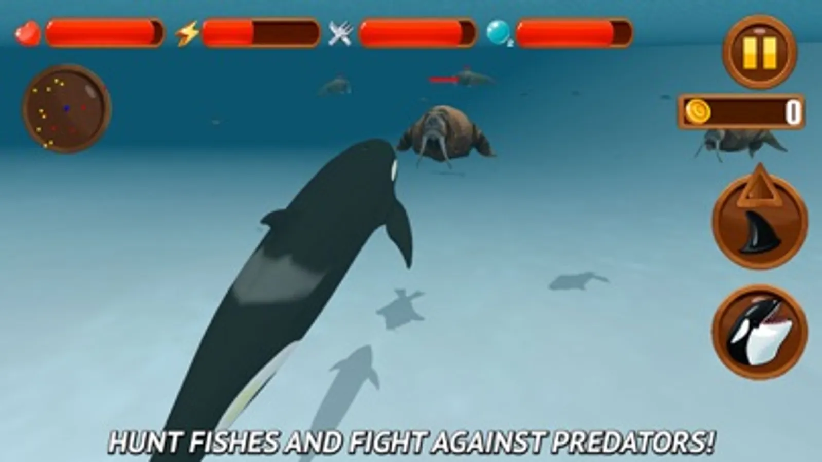 Feel the freedom being a wild sea animal, but don’t forget to mind orca’s indicators to survive. Each killer whale has health, energy, water and food indicators if one of it drops – there is no chance to stay alive!