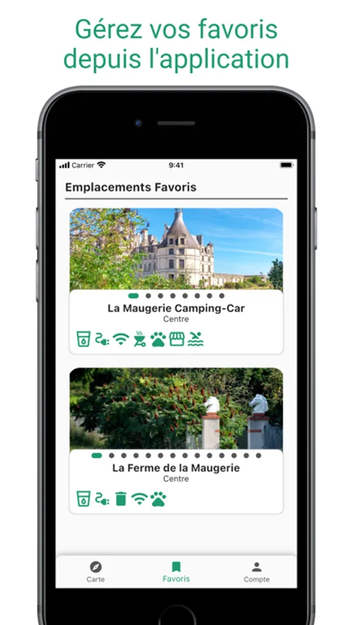 Vous pourrez vous connecter pour gérer votre compte au sein de notre nouvelle version, gérer votre abonnement, et accéder gratuitement au mode Hors-Ligne. Vous avez également un système de favoris afin de planifier vos étapes à l'avance et retrouver facilement ou vous vouliez vous arrêter. Vous pourrez aussi utiliser votre appli de navigation GPS (Waze, Maps, ...) pour arriver sereinement jusqu'à destination grâce à notre fonctionnalité de guidage.