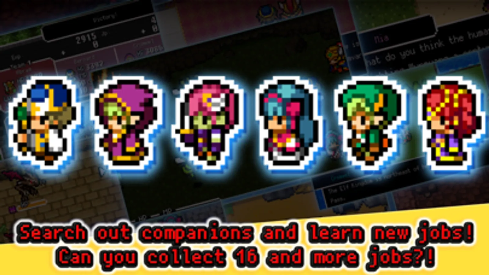 Scour the world in search of new companions and collect more than 16 jobs! Then by mastering the skills particular to each job, battles will play out in increasingly strategic and exciting ways! And if that were not exciting enough, character costumes also change according to their job, giving pixel lovers something even more to look forward to!