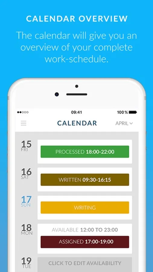 The new Shifter mobile app is your personal work assistant, which helps you to plan and oversee your workschedule. Simply log in with your Shifter account and view your calendar to create, edit and look up planned shifts.