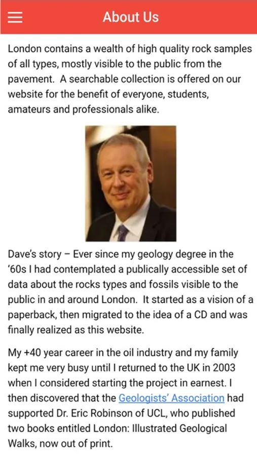 A searchable map of London showing a huge array of rock types and fossils visible to the public in and around London.