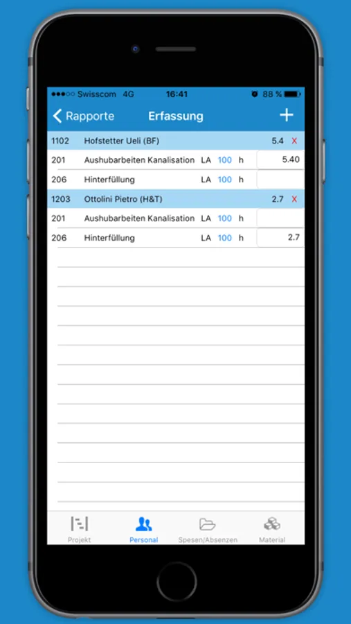 Rapportieren Sie ihre Arbeitsstunden und das Material einfach, schnell und effektiv.
