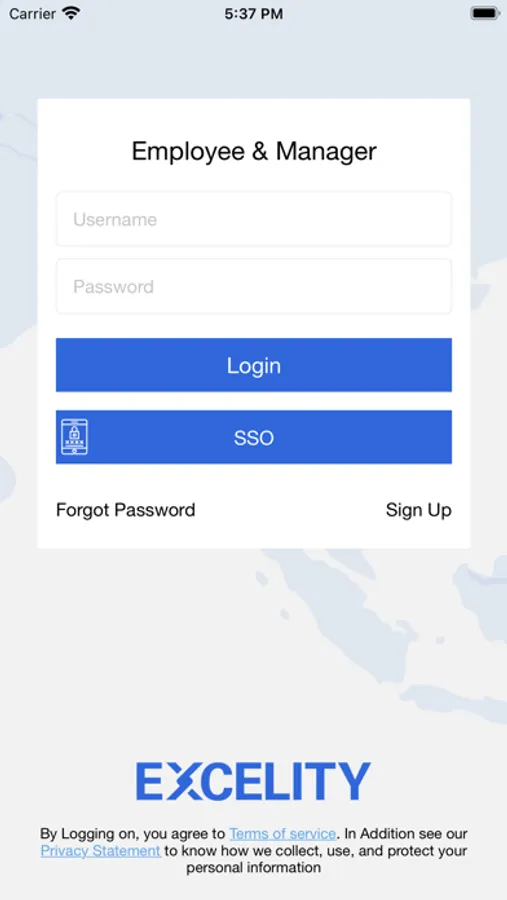If you are able to Login but not able to see any Menu like Payroll, Personal information, etc., then please check with your HR/Payroll admin to get in touch with Excelity Payroll contact to give access permission for the menu as well which they can access through Mobile app.