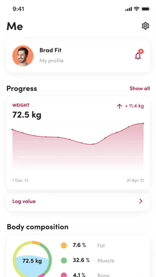 * Je gewicht en andere statistieken invoeren en je voortgang bijhouden