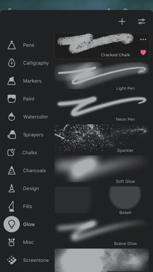 - Hundreds of built-in brushes: Airbrushes, Calligraphy, Chalk, Charcoal, Glow, Lasso Fills, Pencils, Markers, Oil Paint, Paint Splatter, Spray Paint, Screentones, and Watercolor