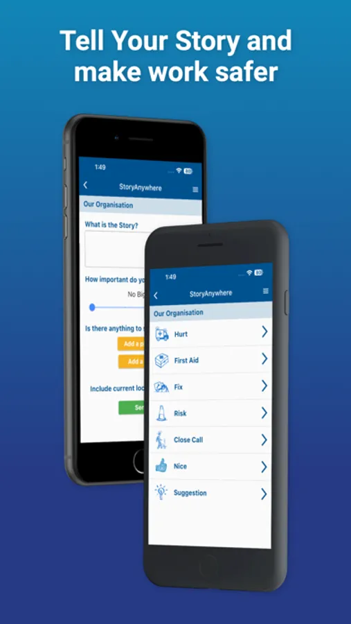 We know real life stories are the best way to find ways to make work safer. Use the Tell Your Story® section of the mobile app to share your stories. Stories might include Close Calls, Risks, things to Fix, if someone has been Hurt, or just needed First Aid, and even Nice Jobs and Suggestions. It takes less than 30 seconds, so get involved, download the app, and Tell Your Story!