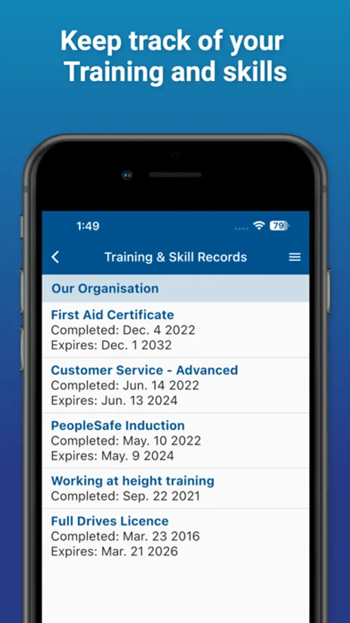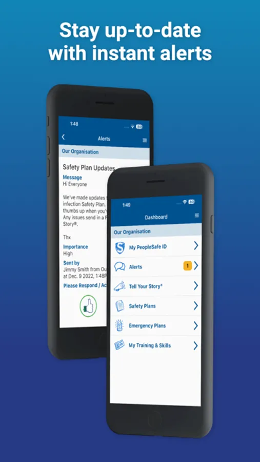 By having the PeopleSafe® StoryAnywhere mobile app in your pocket, you can easily access your organisation's Safety Plans and Emergency Plans, get safety Alerts and view your Training and Skill records. You can also update your contact details, including emergency contact info.