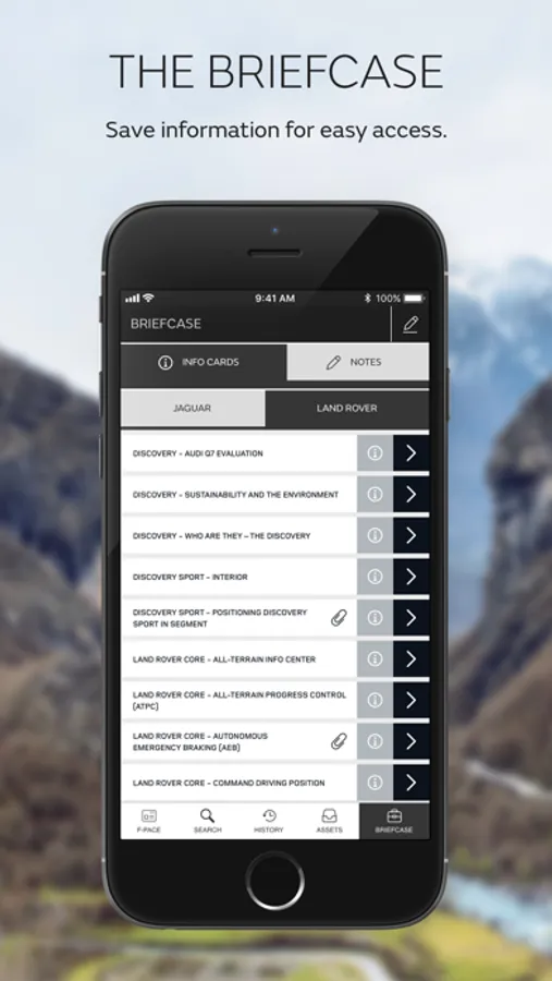 Segmented into folios tailored to each vehicle line and core brand features, information is presented in a variety of engaging ways. Short videos are included throughout, explaining key topics. These videos can also be accessed from the Related Videos area in each folio. Knowledgeable experts appear in the videos such as Ben Collins, the former Stig from Top Gear, Vicki Butler Henderson, racing driver and TV presenter, Justin Bell, racing driver and Lorraine McKiniry, TV presenter. Interact with content via a variety of activities including swipe to reveal more, hotspots and 360⁰ interior and exterior views of Jaguar Land Rover vehicles and their competitors.