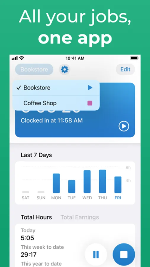 Discover the ultimate work time and earnings tracker with an intuitive interface, automatic overtime calculation, smart reminders, cutting-edge location tracking, and seamless management of multiple jobs – all at your fingertips!