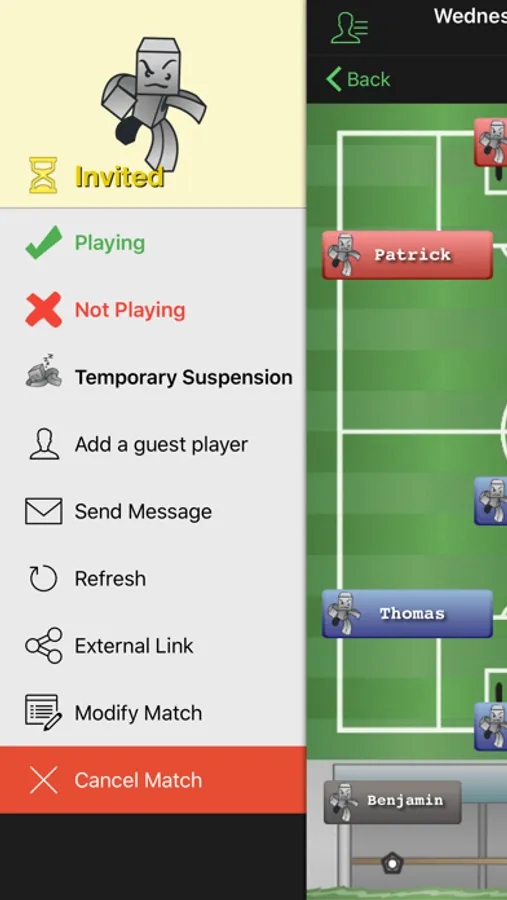 - If a player changes his mind, all he has to do is click "Not Playing" and let Calecio find a replacement.