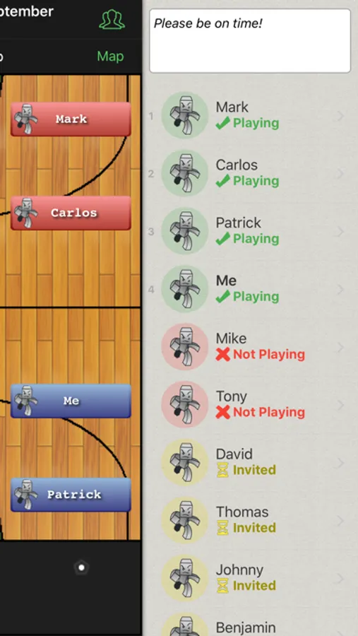 - Calecio will send everyone a match invitation with all the information needed including map location, date, comments.