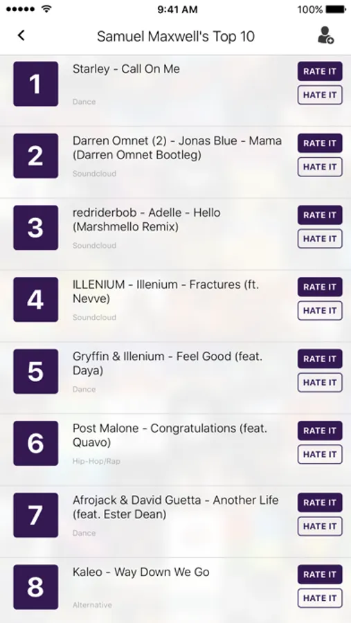 With Music Maestro, you can share the songs you love or find Music you haven’t heard yet. Download your new finds directly from iTunes, Soundcloud and Spotify with the touch of a button. Not sure what to listen to today? See what your friends and people with like genres are listening to and rate and hate their Music.