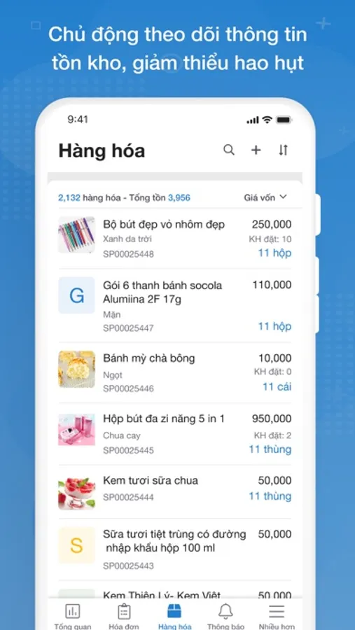 Báo cáo tổng quan và rõ ràng về: doanh thu, tồn kho, giao dịch, tình trạng hàng hóa, hàng nhập, hàng bán… cho bạn nắm rõ các số liệu, chỉ số về kết quả hoạt động bán hàng trong ngày, định kỳ hay bất cứ khoảng thời gian nào bạn cần thống kê.