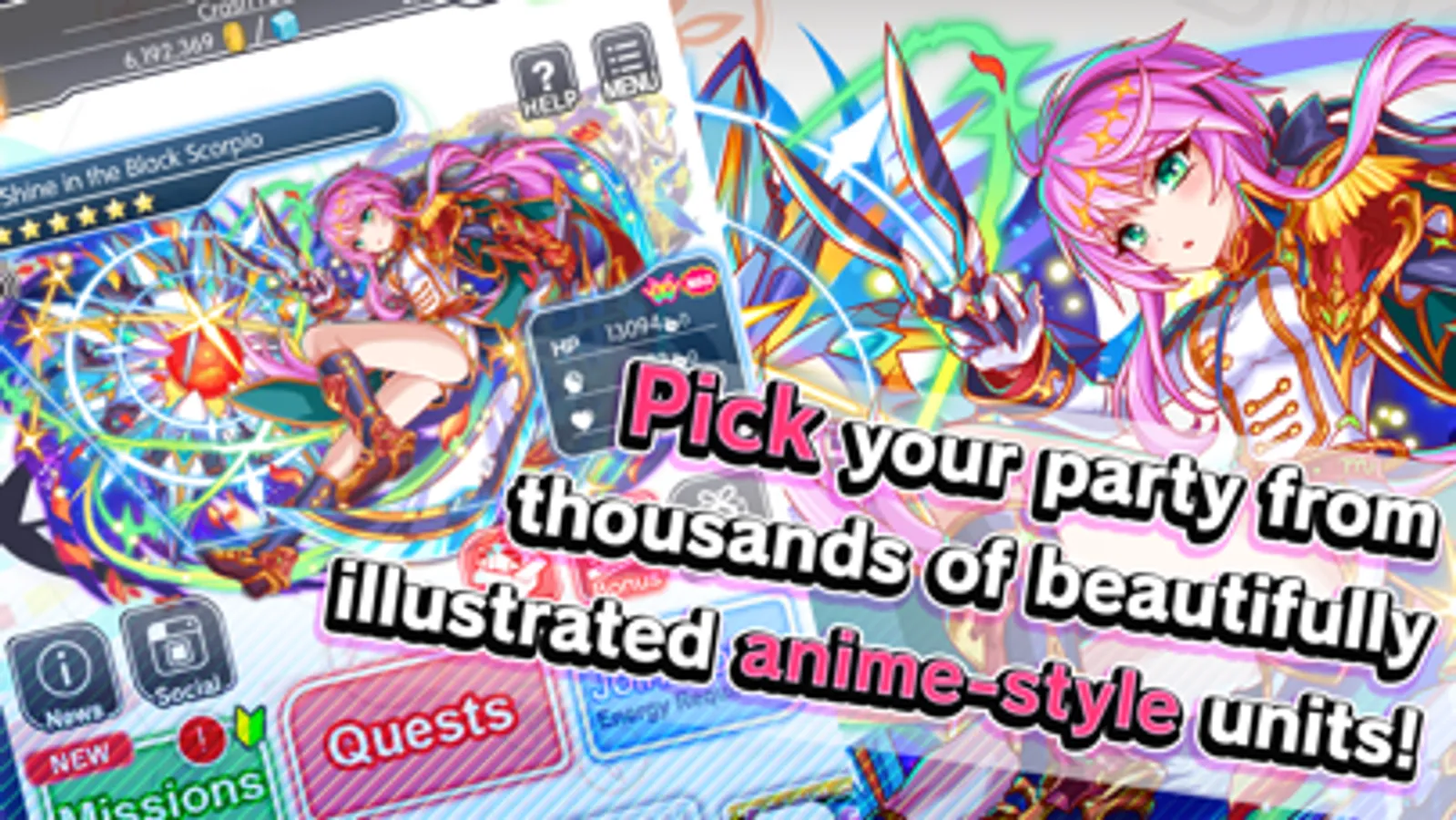 Crash Fever collaborates with famous Anime and releases time-limited units periodically. In here, you can collect, enhance, and awaken your favorite characters!