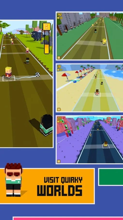 * Don't just play in a stadium! Run through QUIRKY ENVIRONMENTS like Mystic Peaks, Castle County, Dino Land and many more
