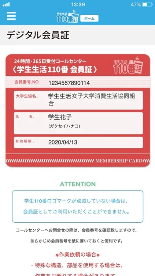 カギ、水、自転車などの修理から、電話相談まで24時間365日対応する「学生生活110番」に「デジタル会員証」が誕生しました。