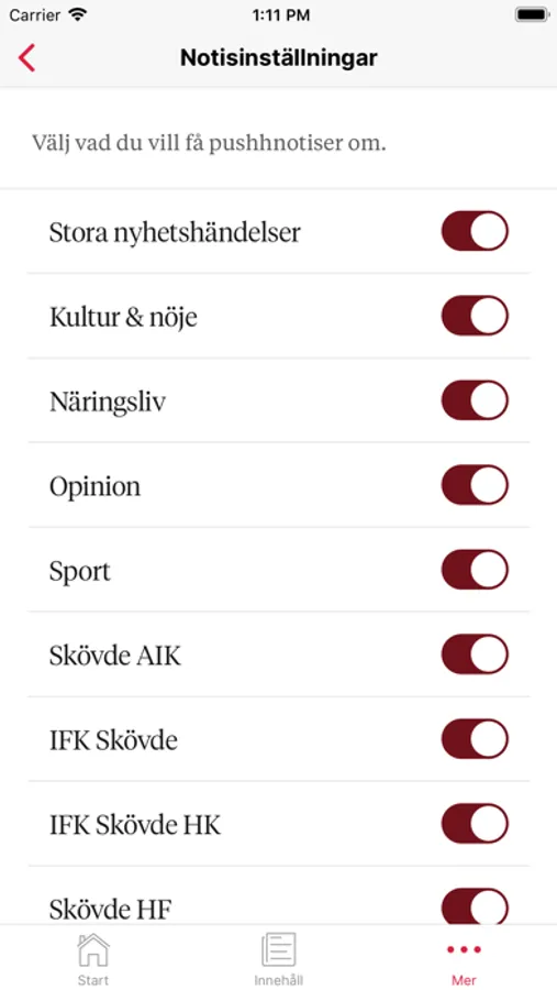• Prenumerera på nyhetsnotiser om ditt favoritlag eller ämnen som intresserar dig – så hänger du alltid med.