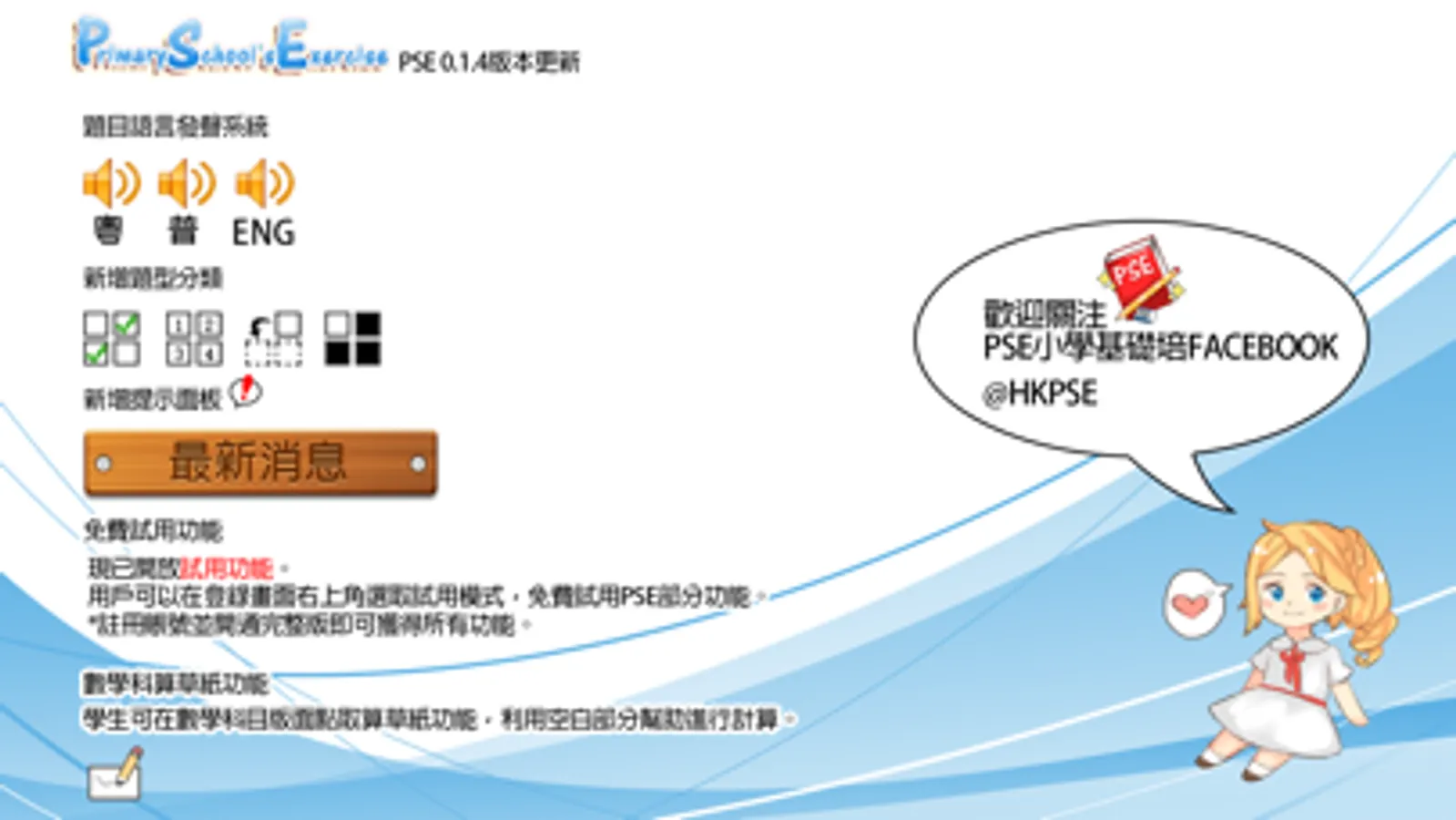 在PSE各練習題目中均會加插粵語、英文、普通話,三語語音教學系統,目的是提高學生理解能力之餘,亦能配合各學校之教育。
