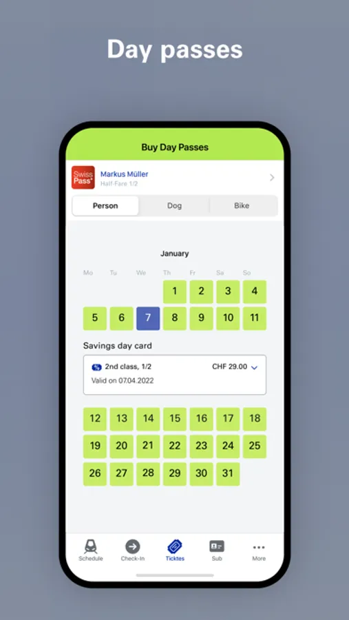 Simply buy your tickets before your journey or use the all-Switzerland check-in and check-out function. Ride more than you pay and buy a multiple-journey ticket. This allows you to pay either before or after travelling. In addition, the app allows you to check timetables across the whole of Switzerland for bus, tram, train and ship.