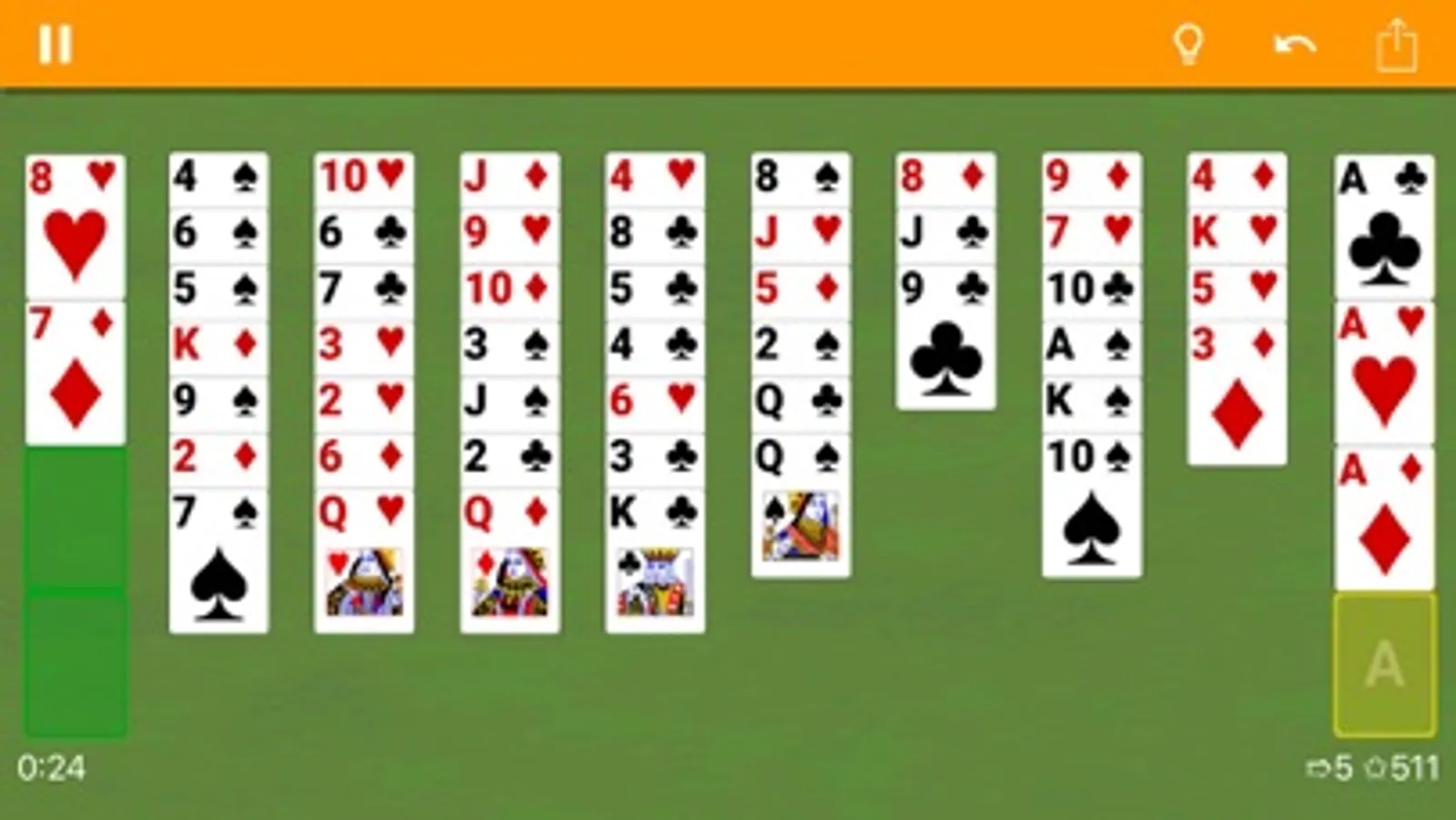 You play with a 52 or 48 cards deck; your goals are to have fun and build four stacks with the cards from Ace to K, one for each suit.